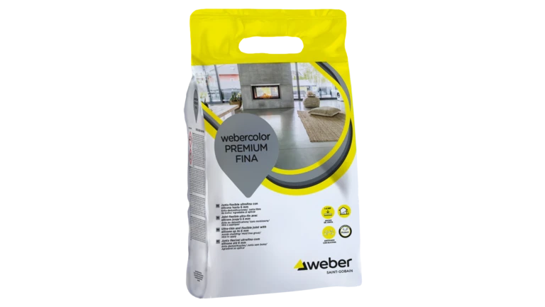 - webercolor PREMIUM FINA: Junta flexible ultrafina con silicona hasta 6 mm, adecuado para baldosas de cualquier formato. Disponible en 30 colores exclusivos para un acabado superior.