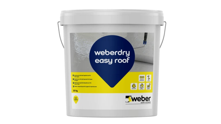 La tercera y última solución que conforma esta gama es weberdry EASY ROOF, un impermeabilizante híbrido de poliuretano en base agua que ofrece una excelente capacidad de cubrición en tejados, cubiertas y terrazas. Uno de sus beneficios principales es que presenta una alta resistencia mecánica a la vez que es extra flexible y resistente a fisuras. Además, es transitable y puede aplicarse sobre una gran variedad de soportes: hormigón, cerámica, cemento, ladrillo, sintético, membrana de poliuretano, etc.