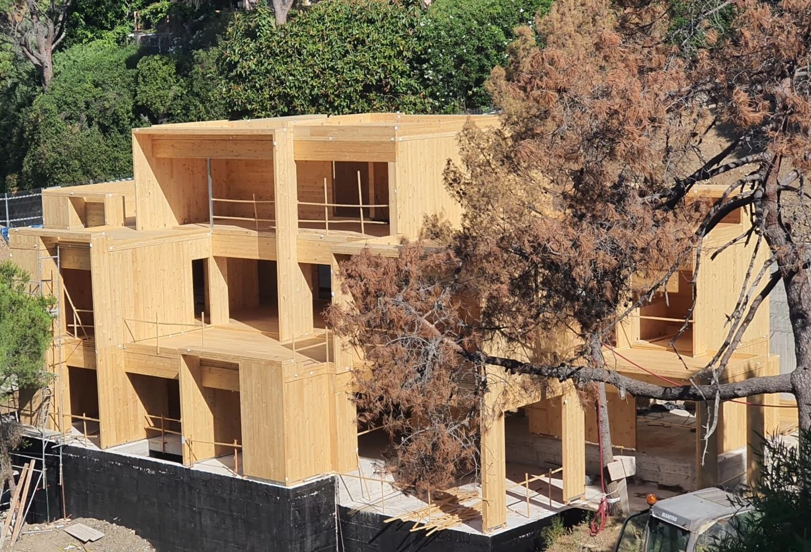 La estructura y cerramientos de la vivienda son de madera contralaminada (CLT) y la solución de aislamiento por el exterior se realizó con el sistema webertherm natura, compuesto por placas de corcho de 12cm de espesor y acabado de mortero al silicato webertene premium. Al tratarse de un soporte de madera, se utiliaron espiga STR H con tornillo para madera.
