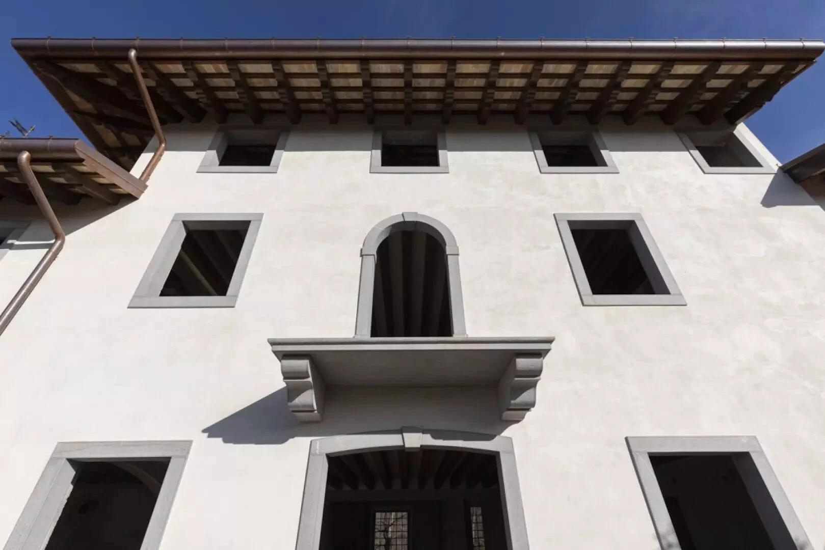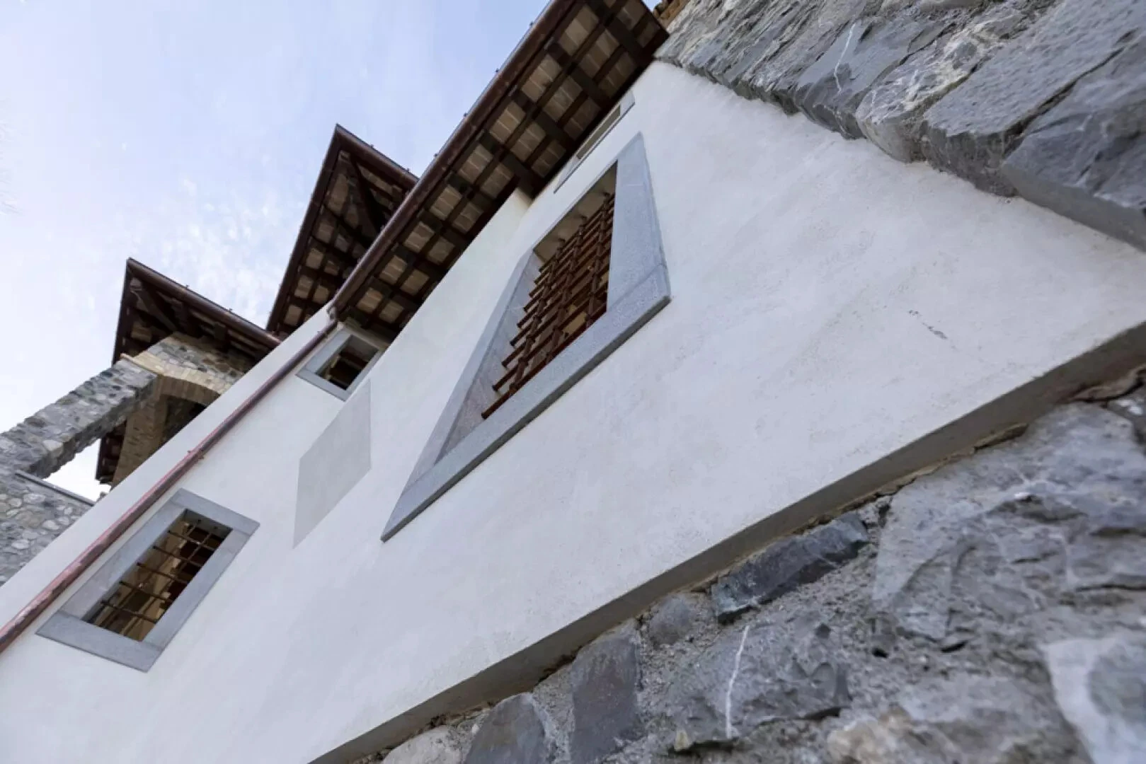 La reconstrucción del edificio se llevó a cabo mediante estructuras de hormigón armado y muros perimetrales, en parte revestidos con piedra vista y en parte protegidos por aislamiento exterior de altas prestaciones, enlucidos con productos de base cal. Esta alternancia de materiales y la presencia de marcos de piedra que resaltan los huecos aumentan el dinamismo de la construcción y hacen que el resultado estético final sea especialmente agradable.